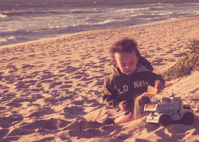 The water was too cold to swim in but that doesn't stop Jaxen from at least putting his feet in. It's tradition that whenever you are at the beach you at least have to put your feet in the water.